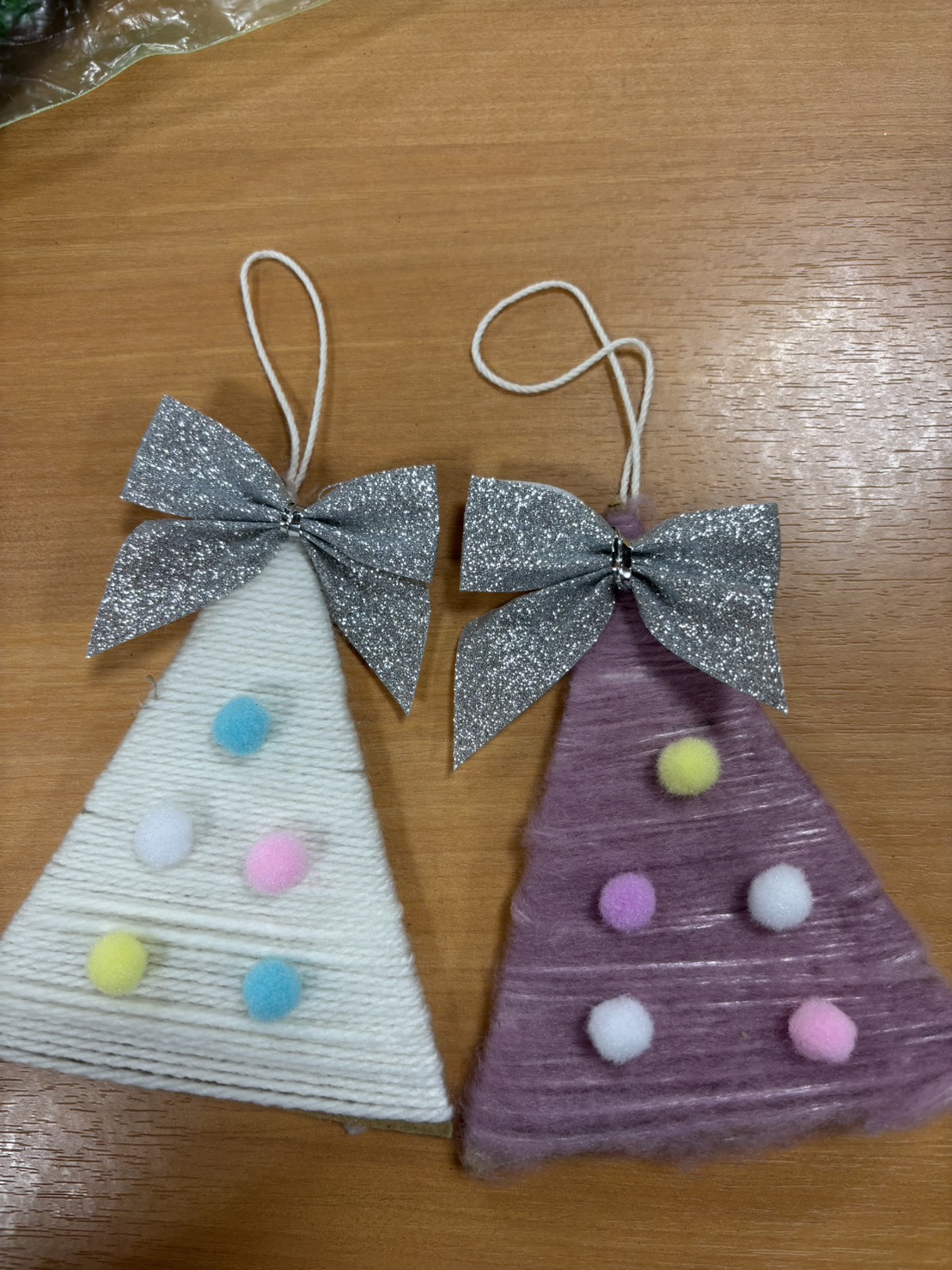 工作タイムでは、毛糸でくるくるオーナメントづくり🎄