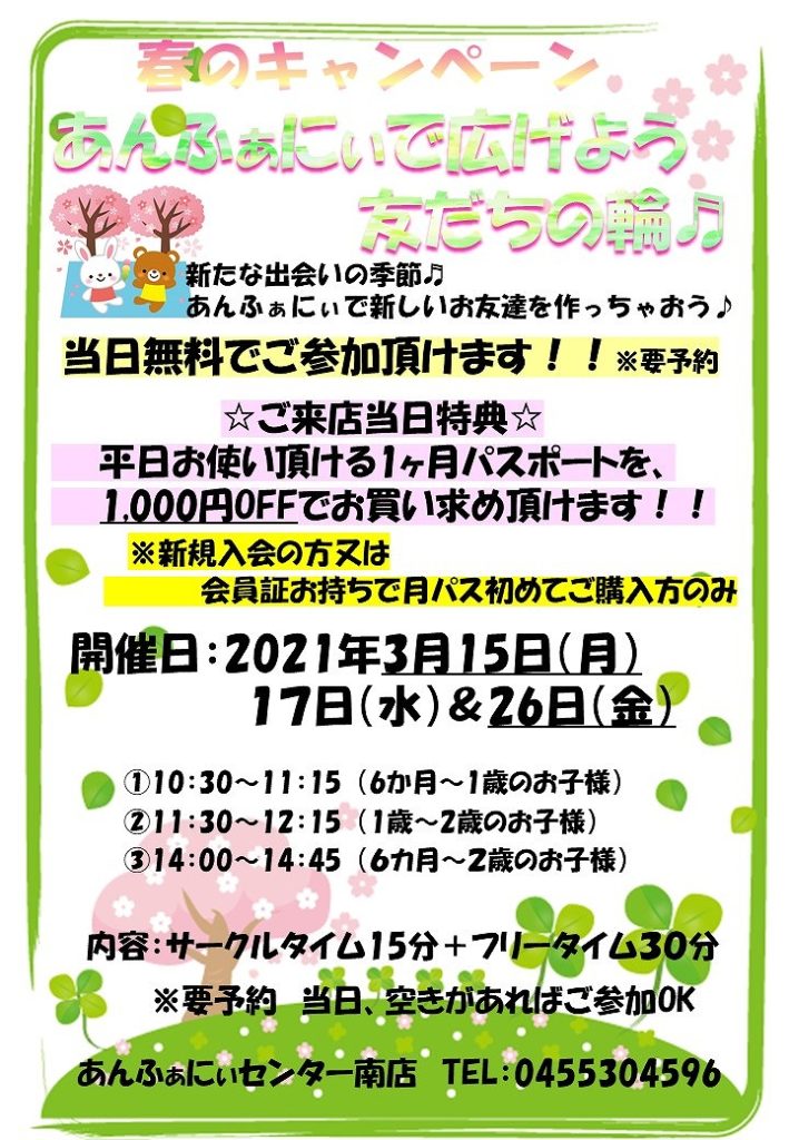 新たな出会いの季節♬あんふぁにぃで新しいお友達を作りませんか?
