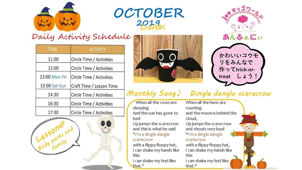 今月のクラフトテーマは、かわいいコウモリを作って、トリックオアトリートをしよう!です土日祝の13時~行っておりますので、ぜひ、作りに来てくださいね♪